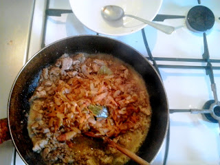 fundo da frigideira, recolha com uma colher e ponha no soffritto preparado antes (sim, refogado em italiano é soffritto), temperando no lugar do
